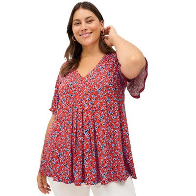 Women's Plus Size 2 Pieces Floral Pleated V Neck Ruffle Short Sleeve Casual Tiered Babydoll Blouses - Agnes Orinda