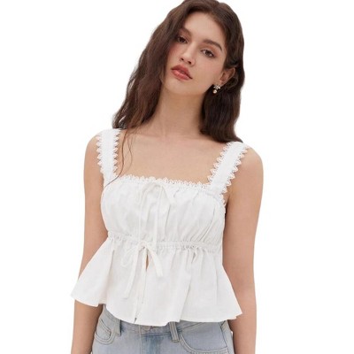 Coolmee Women's Eyelet Cami Tank Top Cute Square Neck Pleated Crop Top Summer Loose Fit Sleeveless Top