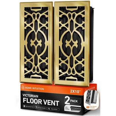 Home Intuition Victorian Floor Vent Covers 4X10 Inch with Mesh Cover Trap Heat and Air Walkable Metal Floor Vent for HVAC Duct, Polished Brass