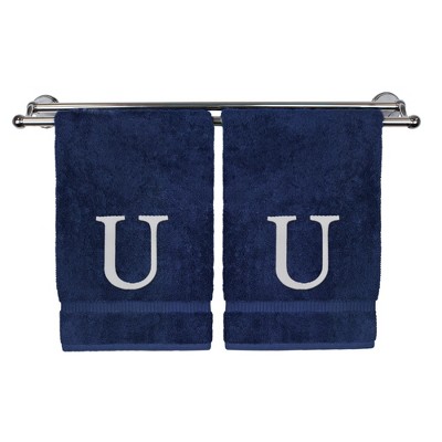 BC BARE COTTON Monogrammed Hand Towel, 100% Turkish Cotton - Set of 2 - Navy - White Block