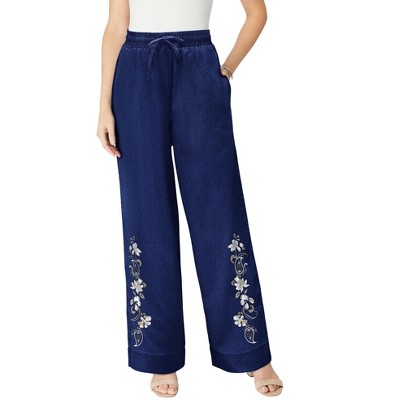 Roaman's Plus Size Floral Embroidered Straight Leg Jean