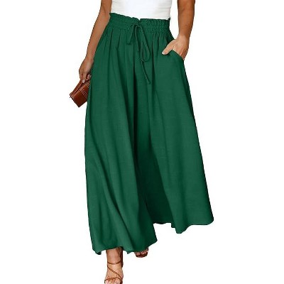 Coolmee Women Plus Size Palazzo Pants Wide Leg Smocked Waist Casual Loose Pants with Pockets