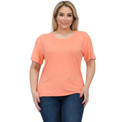 Women's Plus Size Tops Crew Neck Short Sleeve Split Hem Tee Shirt Casual Summer Ribbed Knit Blouses