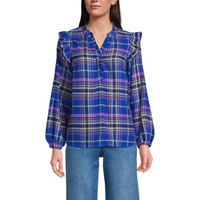 Lands' End Women's Ruffle Front Flannel Popover Blouse