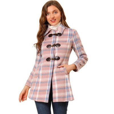 Allegra K Women's Toggle Outerwear Classic Turn Down Collar Plaid Duffle Front Pea Coat