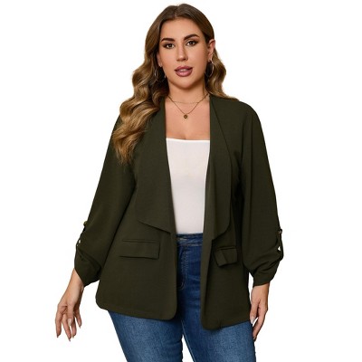 Coolmee Women Plus Size Casual Blazer Open Front Long Sleeve Work Office Cardigan Jackets