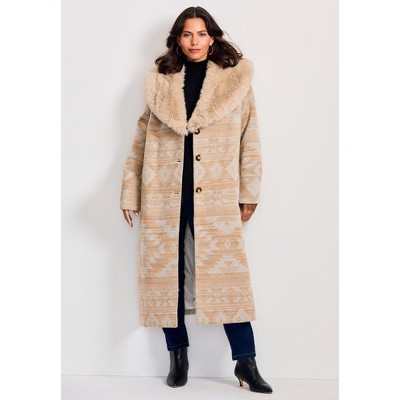 Jessica London Long Wool-Blend Coat With Faux Fur Collar