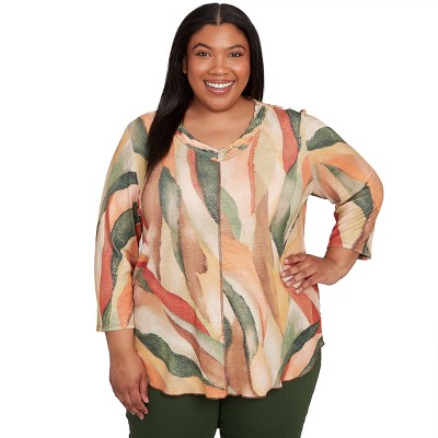 Alfred Dunner Womens Plus-Size Abstract Floral Button Front Top , Plum Multi , Size 3X