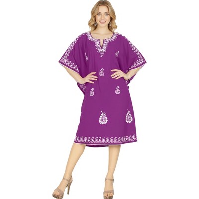 LA LEELA Women's House Daily Routine Evening Wear Solid Casual Relaxed Caftan Mini Cover Up Evening Dresses for Women Plus Size 2X-3X Purple, Solid
