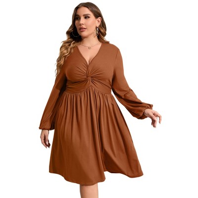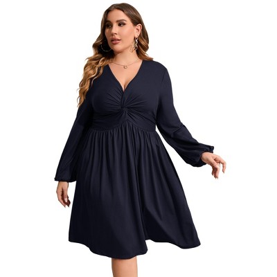 Clearlove Plus Size Dresses for Women V Neck Long Sleeve Twist Knot Front Flowy Dresses