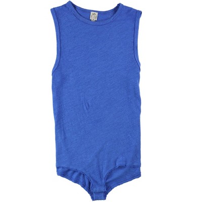 Slickblue Chess Cage Print Bodysuit, Baby Blue, Sleeveless Crew Neck, Cotton Blend, Semi-Stretch, Thong Snap, Size S-M-L