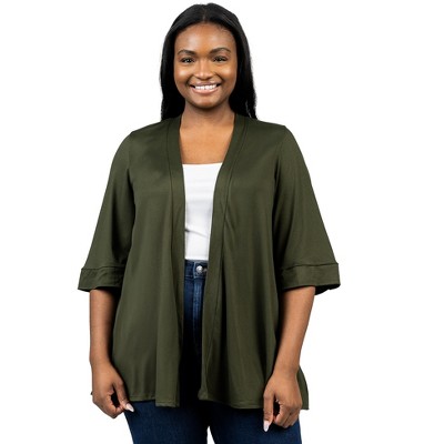 Plus Knit Three Quarter Bell Sleeve Open Cardigan - 24seven Comfort Apparel™