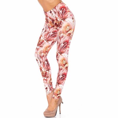 Creamy Soft Mocha Floral Leggings - USA Fashion (One Size Plus,Brown)