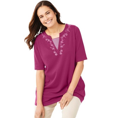 Woman Within 7-Day Embroidered Layered-Look Tunic