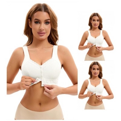 INSPIRE CHIC 3 Pcs Women's Lace Front Closure Full Coverage Workout Wirefree Breathable Soft Bras