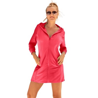 Swimsuits for All Chlorine Resistant Quick-Dry Hoodie Zip Front Cover Up (Plus Sizes Available)