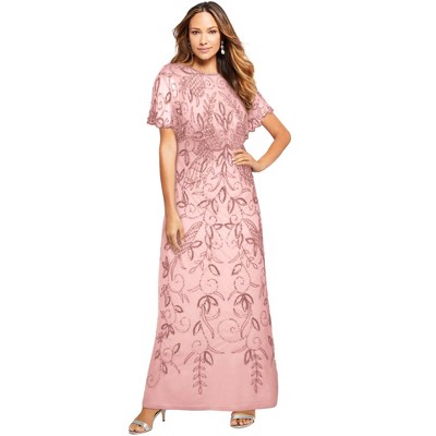 Roaman's Plus Size Beaded Capelet Maxi Gown – Glam Evening Dress