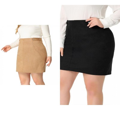 Agnes Orinda Women's Plus Size Formal Faux Suede Printed Side Buttons Bodycon Mini Skirt