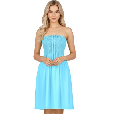 LA LEELA Womens House Daily Routine Evening Wear Holiday Backless Casual Smocked Mini Dress Tube Top Strapless Dresses for Women One Size Blue, Solid