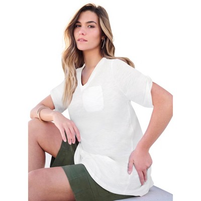 Roaman's Plus Size Slub V-Neck Boyfriend Tunic Top