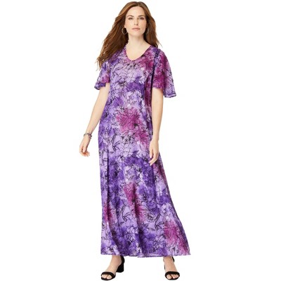 Roaman's Plus Size Flutter Sleeve Wrap Maxi Dress