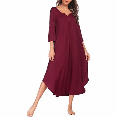 Ekouaer Long Nightgown for Women 3/4 Sleeves Nightshirt Maxi Sleep Dress Oversize Loungewear Full Length Sleepwear Burgundy XXL