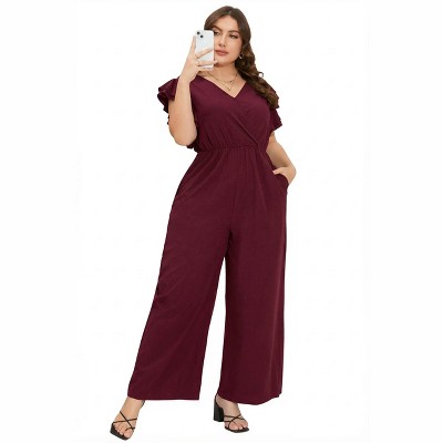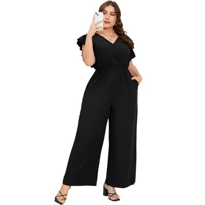 Women's Plus Size Short Sleeve Wide Leg Jumpsuit with Pockets