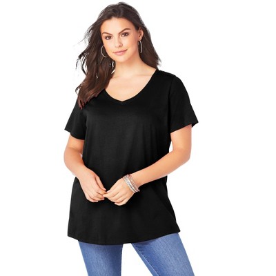 Roaman's Plus Size Cotton Ultimate V-Neck Tee
