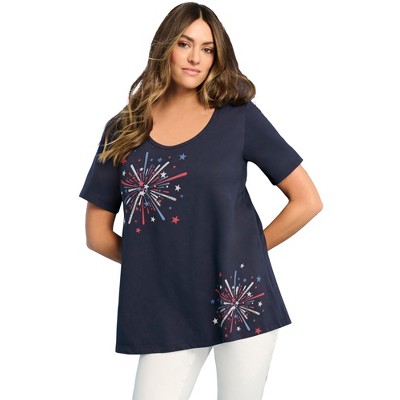 Roaman's Empire Waist Boho Lace Trimmed Tee