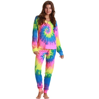 Mattel Barbie Doll Logo Tie Dye Womens' Pajama Cropped Hooded Jogger Set Mulitcolor