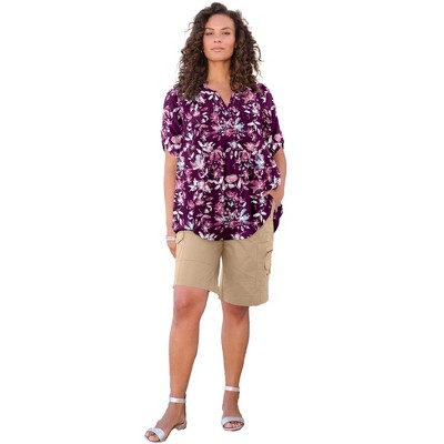 Roaman's Plus Size Angelina Tunic Top – Short Sleeve, Flowy Fit, Everyday Comfort