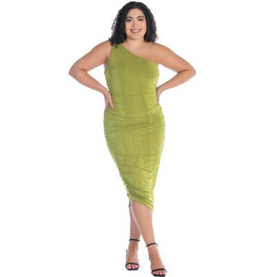 Plus Size One Shoulder Ruched Bodycon Dress - 24seven Comfort Apparel™