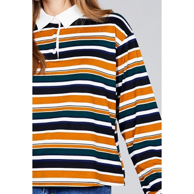 Slickblue Women’s Plus Size Striped Shirt, Long Sleeve DTY Brushed Top, Stretch Fabric, XL, Brown