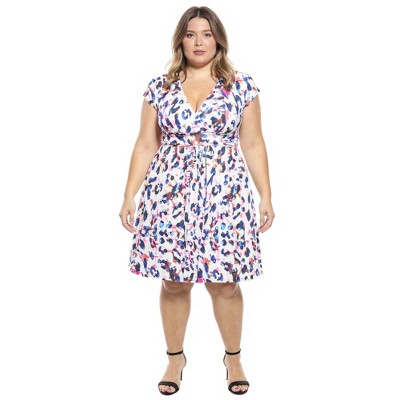 Plus Size Animal V-Neck Cap Sleeve Knee Length A-Line Pocket Dress - 24seven Comfort Apparel™