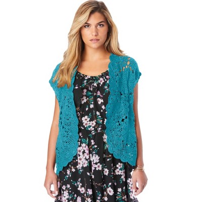 Roaman's Plus Size Scallop Trim Crochet Cardigan Sweater