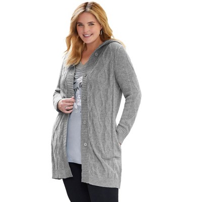 Woman Within Cable Cardigan Hoodie Sweater