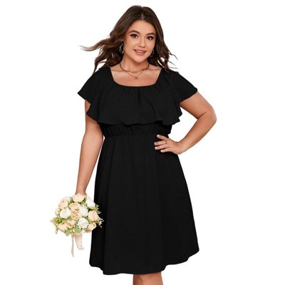 Plus Size Ruffle Sleeve Knee-Length Dress