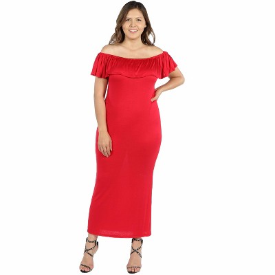 Plus Size Ruffle Off The Shoulder Maxi Dress - 24seven Comfort Apparel™