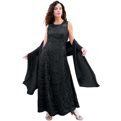 Roaman's Plus-Size Allover Lace Embellished Shawl Gown
