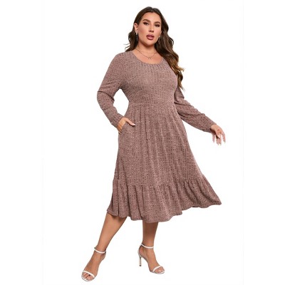 Plus Size Women's Tiered Lantern Sleeve Knit Dress Long Sweater Dress