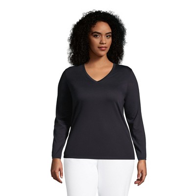 Lands' End Women's Relaxed Supima Cotton Long Sleeve V-Neck T-Shirt