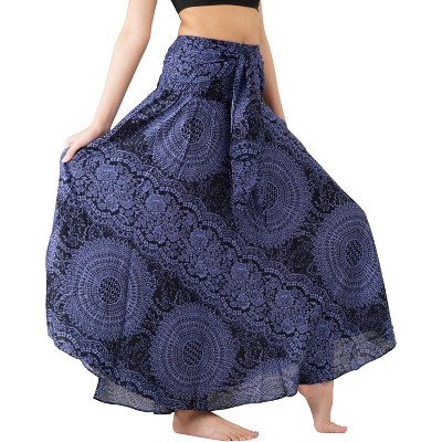 LEVEN SIXTEEN Women's Boho Maxi Skirt - Floral Print Long Flowy Skirt Blossom Navy