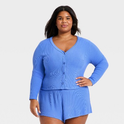 Women's Cozy Ribbed Long Sleeve Button Front Cardi Top - Auden™