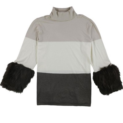 Alfani Womens Faux-Fur Cuff Pullover Sweater