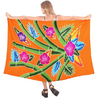 LA LEELA Women's Beach Bathing suit Wrap Bikini Swimwear Cover up Summer Wraps Swimsuit Sarong Skirts for Women One Size Orange, Floral