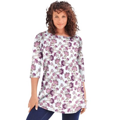 Roaman's Plus Size Cotton Ultimate Boatneck Tunic With Side Slits