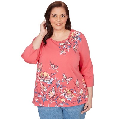 Alfred Dunner Womens Plus-Size Embellished Paisley Floral Crew Neck Top, Azalea, Size 3X