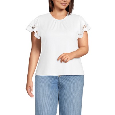 Lands' End Women's Supima Cotton Elbow Sleeve Boatneck Button Shoulder Tee