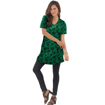 Roaman's Plus Size Cotton Short Sleeve V-Neck Ultimate Tunic