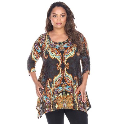 Women's Plus Size Paisley and Animal Print Scoop Neck Marlene Tunic - White Mark